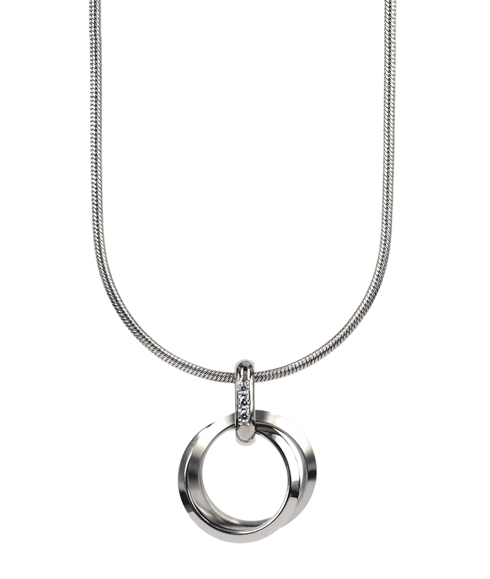 Halsband inspirerat av en astrid&agnes klassiker! Kort halsband med ormkedja och hänge i form av 2 sammanlänkade ringar med små stenar.