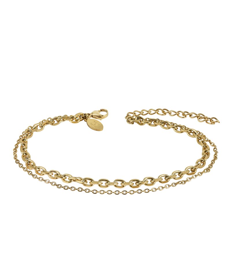 Snygg vristlänk av 2 st ankarkedjor i 14k guldpläterat stål, en tunnare och en bredare flackslipad.