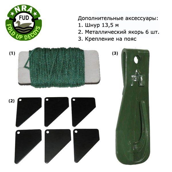 3D-bulvan. Levereras i förpackning om 6 stycken. Den allra första multi reglerbara, icke UV reflekterande bulvan som går att använda i alla miljöer som på stenar, åker och vatten. Utformade för att lura fåglar att slå på bulvan bilden. Finns inga som är smidigare att transportera och som är så naturtrogna ur fågelns perspektiv. NRA FUD (Fold Up Decoy) är en helt ny typ av bulvaner. Man kan enkelt ändra kroppsställningen på bulvanerna för att få ett oregelbundet, naturtrognare mönster. Fungera att använda både på land och i vatten, flyter av sig själva. Bulvaner som inte väger något samt tar mycket liten plats, mycket smidiga att använda! Levereras med jordankare och hållare så att de lätt kan hängas i bältet. Gå in på följande länk för att se på en demo av produkten: Klicka här! Egenskaper -Tredimensionell och naturlig storlek -Naturtrogen, med hög kvalitet -Rörliga huvuden för återskapning av flera olika ställningar -Multi funktionell – för både vatten och land, med avtagbart ankare, eller fastsättning i marken -Neopren-konstruktion säkerställer snabb torkning, flyt egenskaper och flyter efter träff av hagel -Enkel och snabb konstruktion med ankare som förvaras inuti -Enkelt hopfällbara för förvaring -Kompakt och lätt -Scratch bevis och färgbeständigt -Stark konstruktion och lång livslängd -Bältes hake för handsfree transport -Praktisk guidebok medföljer