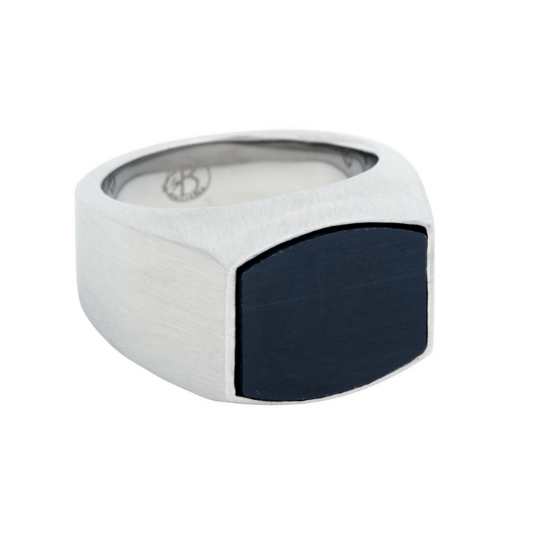 Klackring i rostfritt stål med en svart kolfiber sten.