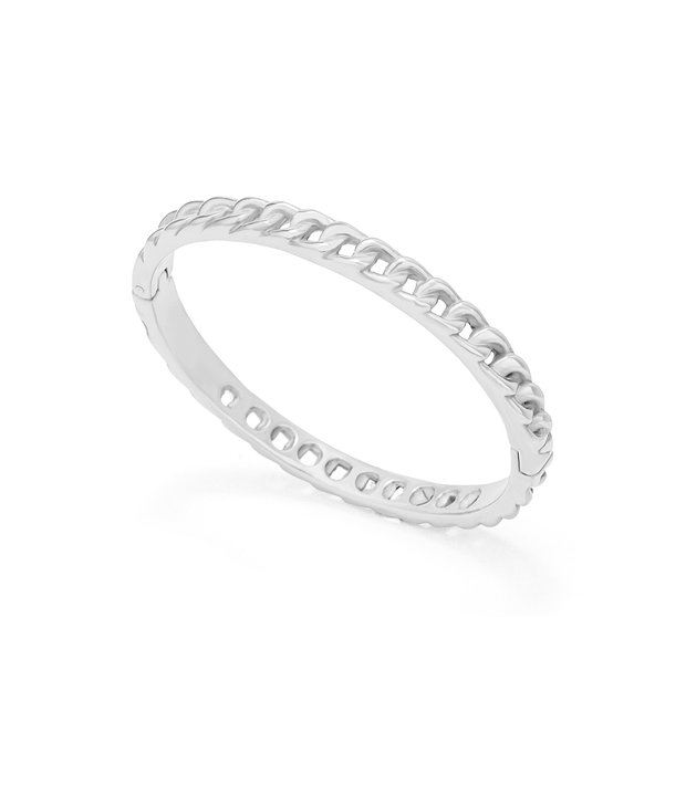 Smycka handleden med detta stela lyxiga armband i silverpläterat rostfritt stål. Ett fantastiskt alternativ som kan leva vidare i år framöver. En oval armring med ett enkelt klicklås på sidan.