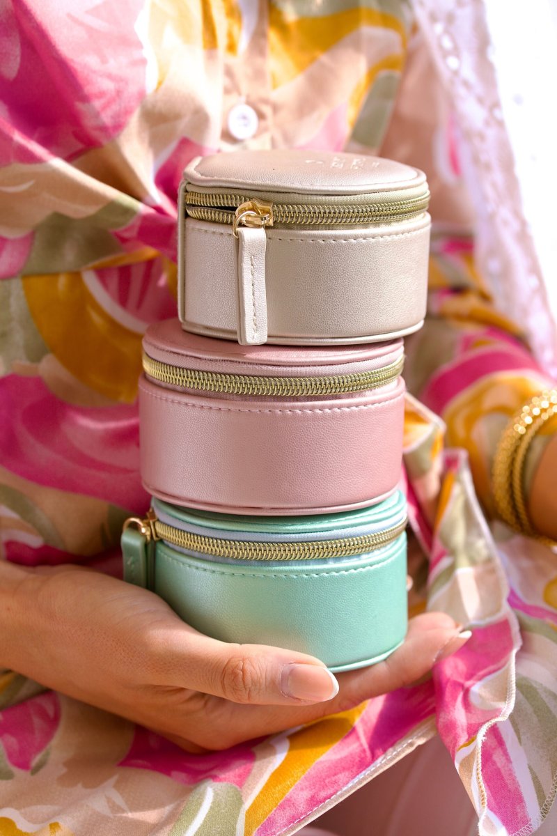 Fint litet smyckeskrin i 3 olika härliga färger med guldfärgade detaljer. Perfekt för resan eller att ha i handväskan!
