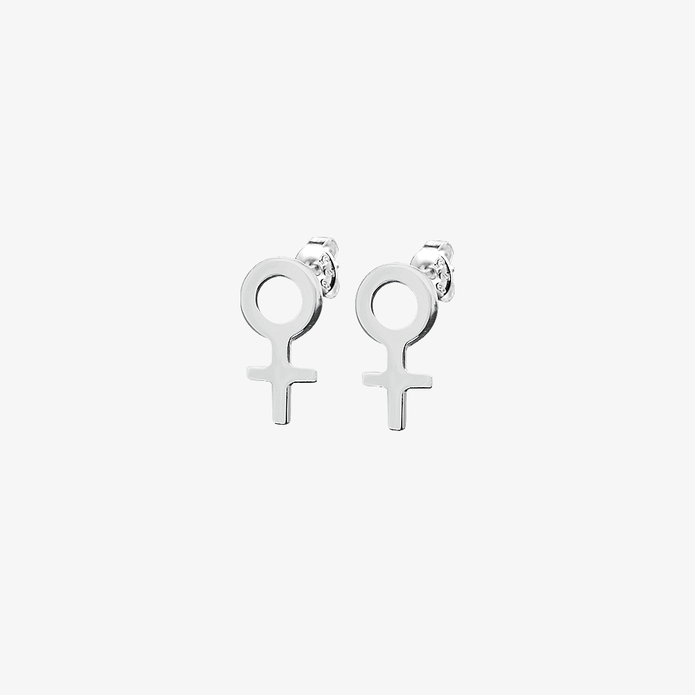 Örhängen på stift i återvunnet 925 sterling silver med kvinnotecken från svenska märket Drakenberg Sjölin. I systerskap och solidaritet förs vi samman. Enade lyfter vi varandra, och med kärlek och stöd åstadkommer vi fantastiska ting. Kvinnor har kraft. Kvinnor är kraft. Så låt oss använda den, tillsammans. För evigt och alltid, women unite.