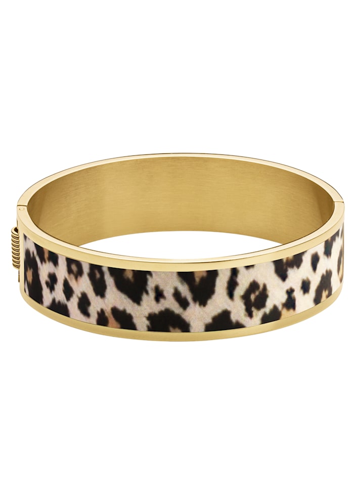 Armring med leopardmönstrat inlägg från danska märket Dyrberg/Kern. Armringen finns i 2 olika storlekar.