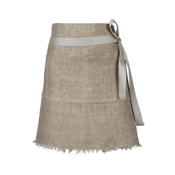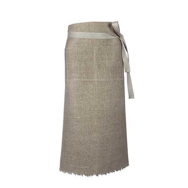 Ett praktiskt midjeförkläde med fickor i grovt lin.