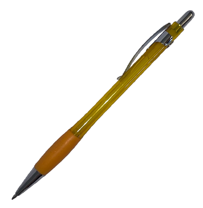 En praktisk och högkvalitativ gul stiftpenna med eget tryck. Stiftpennan har ett gult skaft och gripzon, som passar utmärkt med dess silvriga komponenter i metall. Pennan ger intryck av en kulspetspenna, men är i själva verket en penna med stift. Stiftpennan säljs både med och utan eget tryck, och är därmed det självklara valet för företag såväl som privatpersoner.