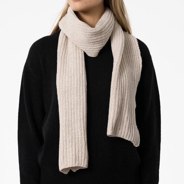 En perfekt halsduk för vinterpromenaden i mjuk merinoull och ribbstickad 1×1. Otroligt mjuk och go att svepa runt halsen! Stickad i 5-lagers extra fin mulesing-fri merinoull från Sydafrika.