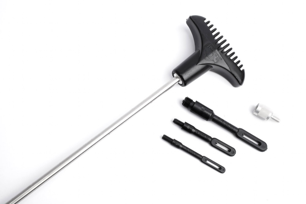 Hoppe’s Läskstång Gevär/Hagel Universal (3-delad) Läskstänger med kullagrat handtag för att rotera med pipans räffling. Finns i portabel 3-deladet utföranden eller styvare läskstänger utan skarv. Förpackade i en förslutningsbar plastficka.