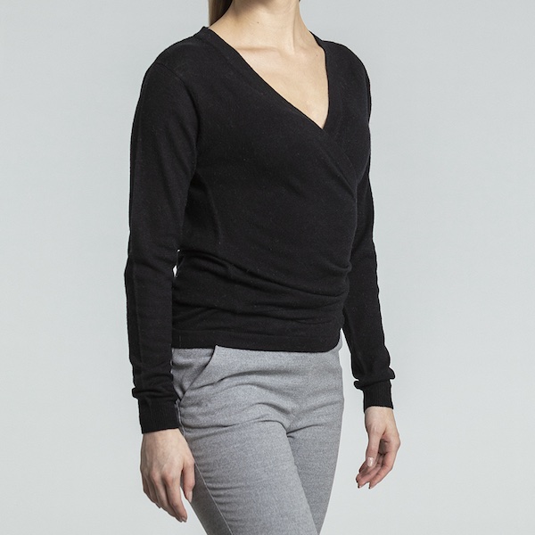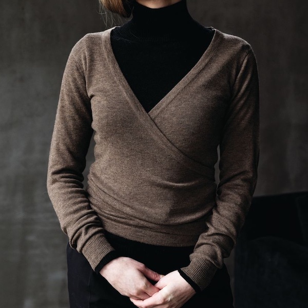 En figursydd kofta med långa omslag som antingen kan knytas runt ryggen för en tightare passform eller knytas löst framtill för en mer avslappnad stil. Koftan kan bäras för sig själv eller användas utanpå en polotröja, blus el.likn. Tillverkad i extra fin, mulesingfri merinoull från Sydafrika. Ett plagg bekvämt att använda året om. Merinoullen är ett mjukt material som inte sticks utan andas men samtidigt håller dig varm, det är också smuts och luktavvisande.