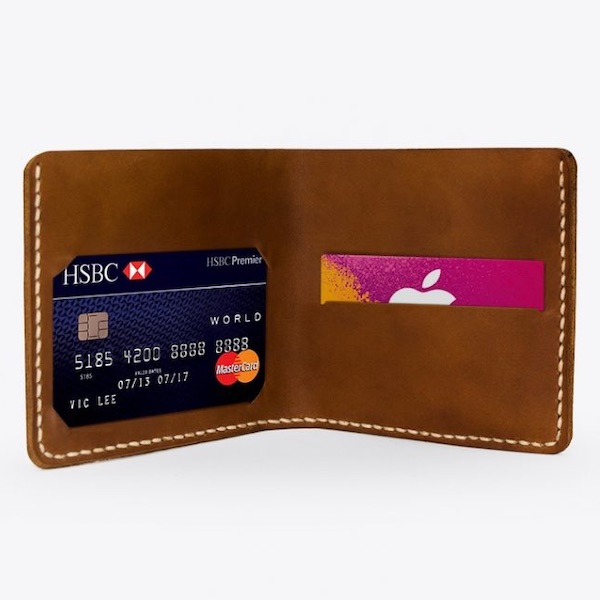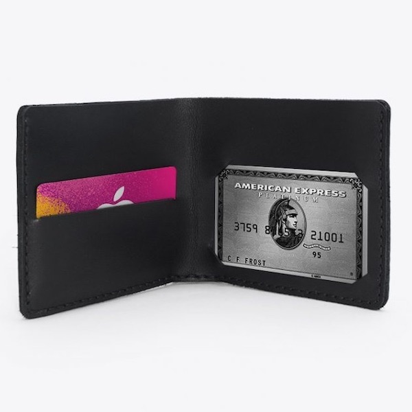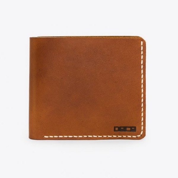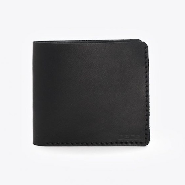 En enkel och traditionell läderplånbok med fickor för kort och sedlar.