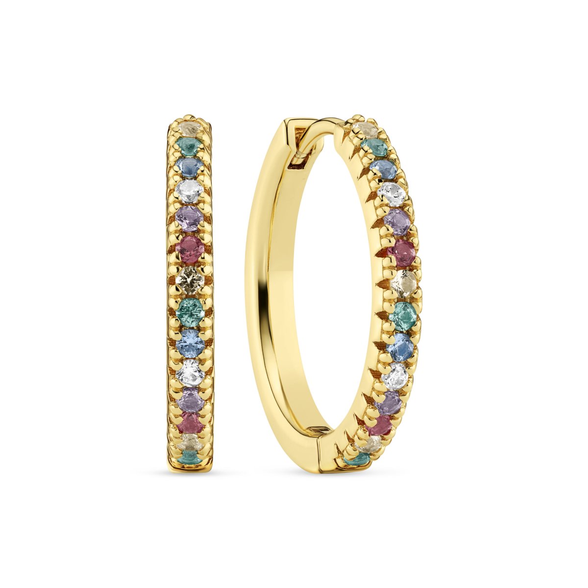 Creoler i silver eller guldpläterat silver från Sif Jakobs med färgade cubic zirkoniastenar. Enkel ”klick”knäppning.