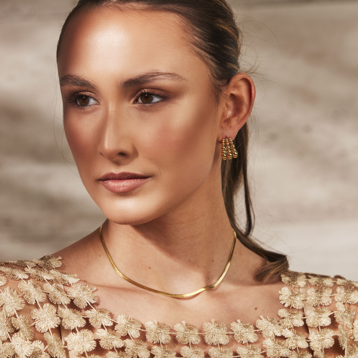 Herringbone-stilen, känd för sin karakteristiska vävda struktur, ligger smidigt mot huden och ger en distinkt glans som är både subtil och iögonfallande. Detta halsband är den perfekta accessoaren för den som strävar efter en modern och sofistikerad look, och det kompletterar både vardagliga och festliga outfits med lätthet.