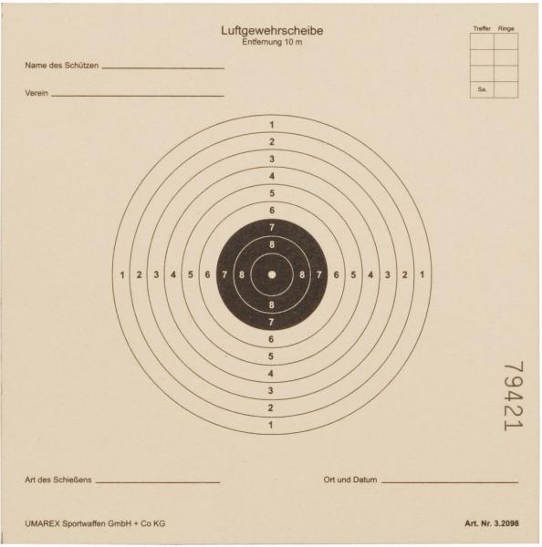 Umarex måltavla, Inomhusskytte, 7,5 meters tavla, 10-ringad 250st Luftvapenskytte